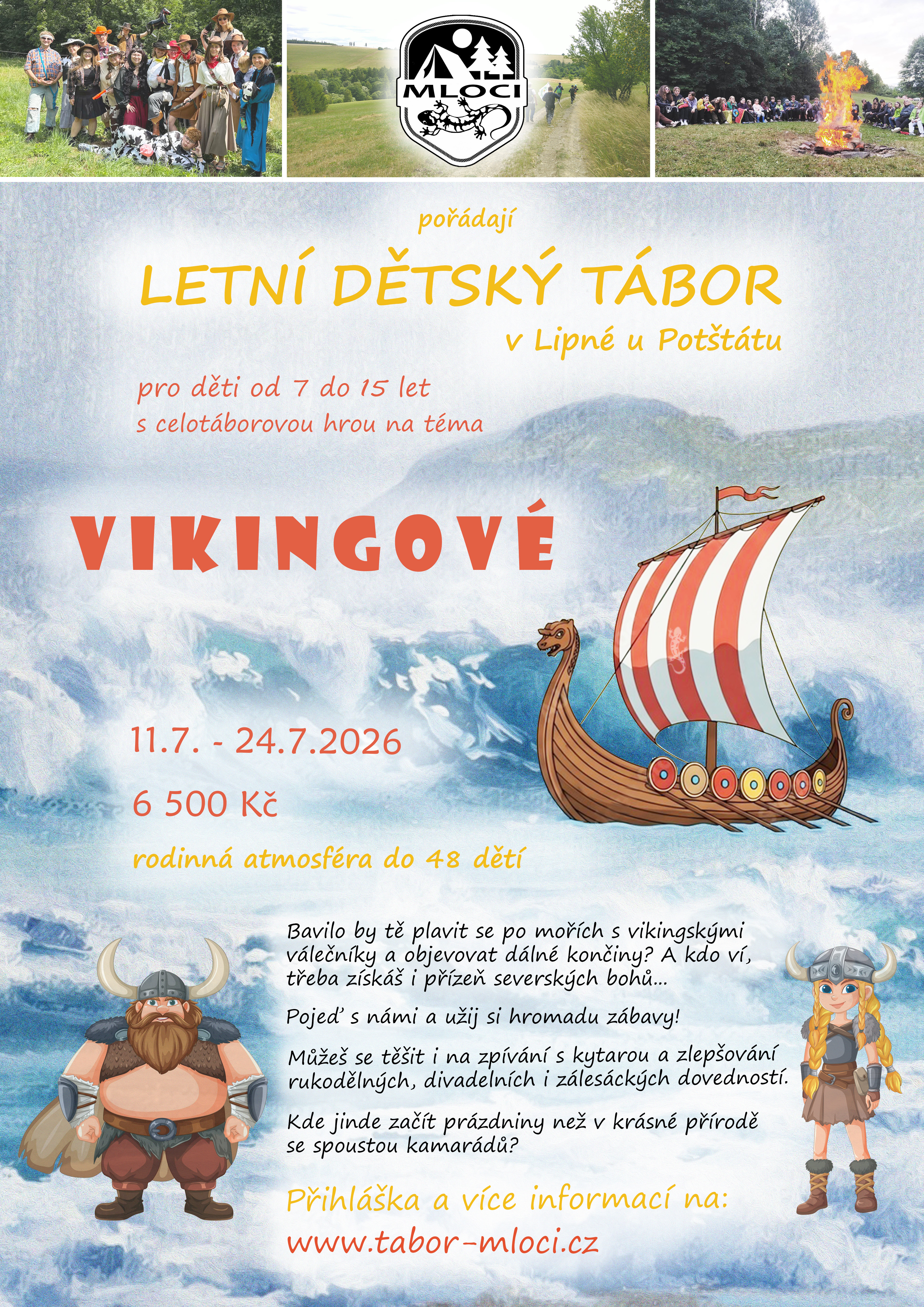 Tábor v roce 2026 proběhne na stejném místě v termínu od 11.7. do 24.7 2026. Celková cena je 6 500 Kč.